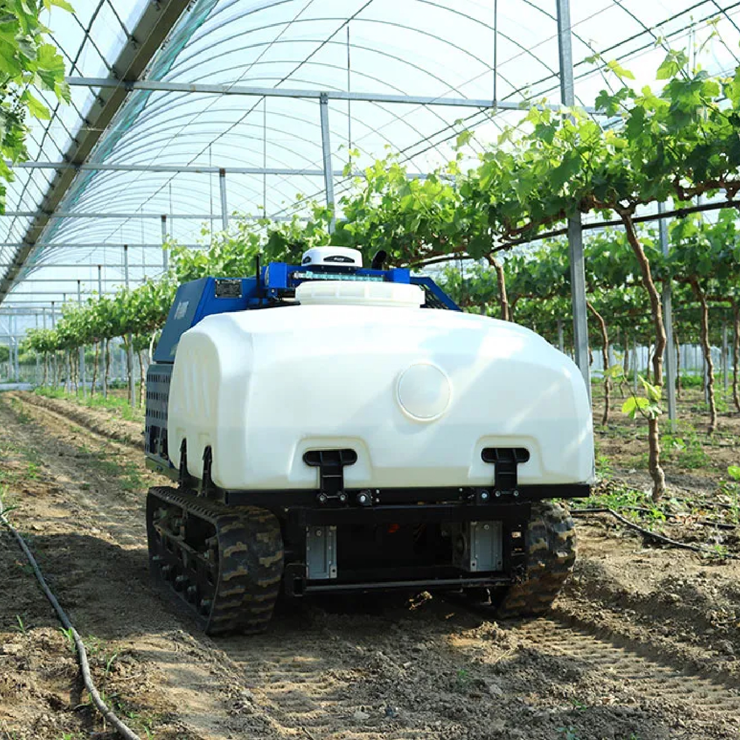 Meet your new partner in vineyard and orchard management. It covers 3 acres per hour, supported by a 6-hour runtime and a 450-liter tank to tackle large fields without interruption. The robust crawler chassis conquers rough terrain and slopes, ensuring no plant is left unprotected — a cost-effective solution to secure your harvest.